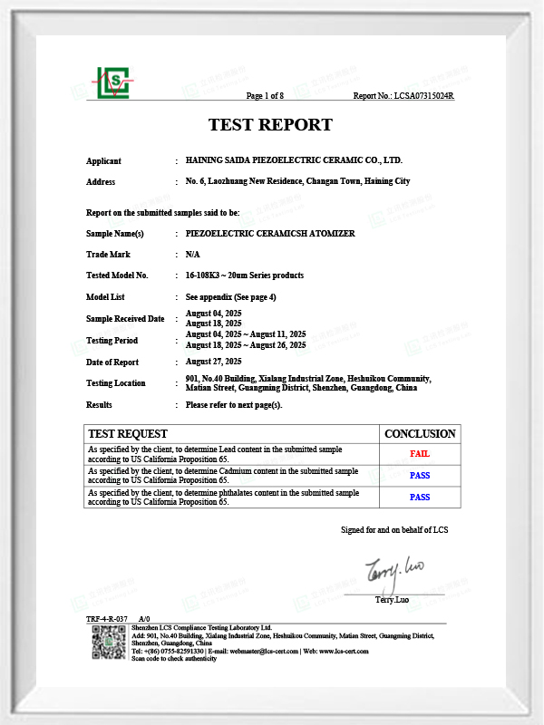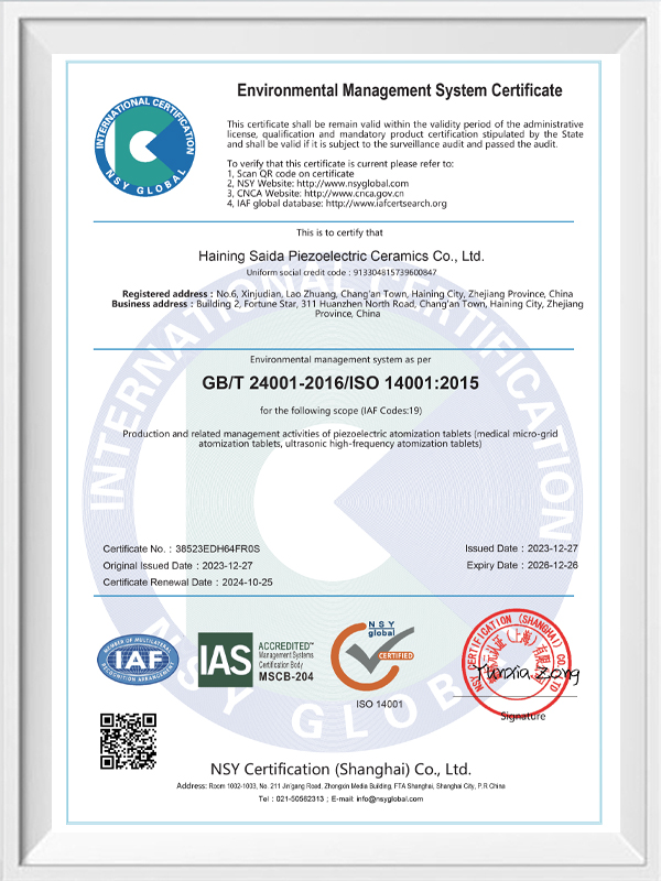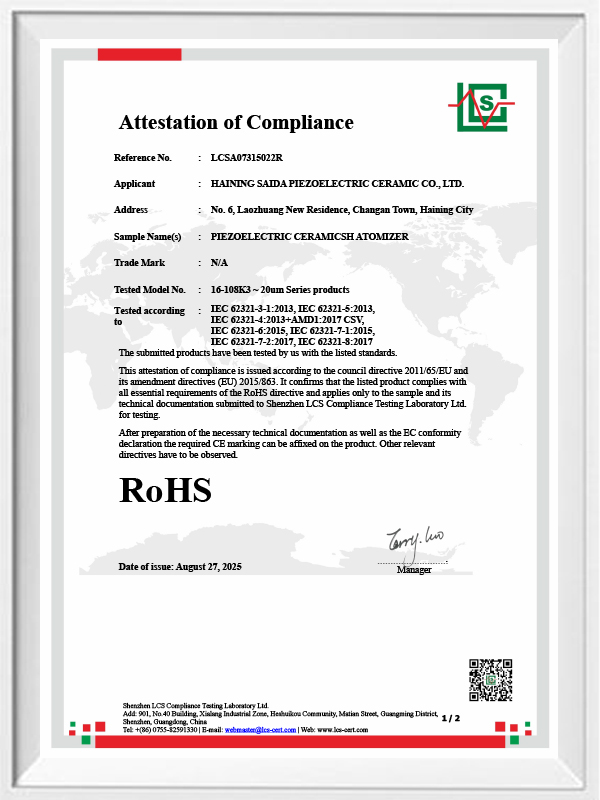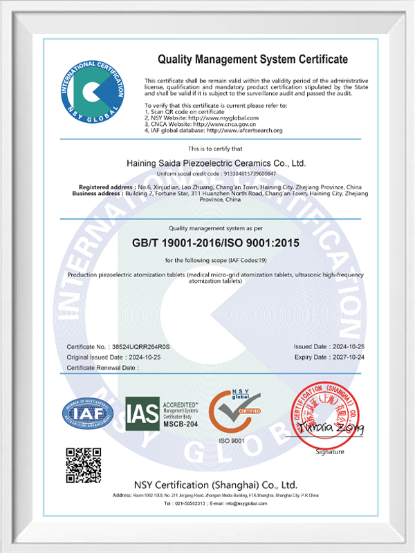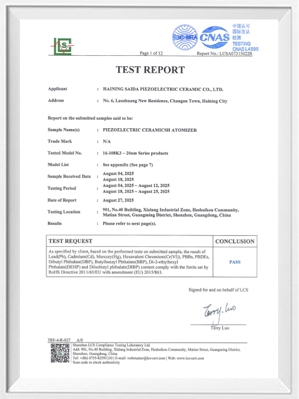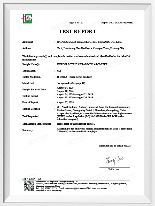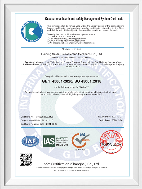 La céramique piézoélectrique sans plomb est connue sous le nom de « perle » de l'industrie piézoélectrique. L'avenir remplacera progressivement la céramique piézoélectrique à base de plomb sous tous ses aspects, qui a déjà les mêmes performances piézoélectriques, et la feuille piézoélectrique à base de plomb. Il est totalement non toxique, inoffensif, sûr et respectueux de l'environnement, ne contient pas de plomb, d'antimoine et d'autres métaux lourds et autres éléments restreints par Rohs, température de Curie élevée Tc-328 ° C, très faible perte électrique TangentLoss Par conséquent, la puce d'atomisation médicale piézoélectrique sans plomb a une grande valeur commerciale et une valeur universelle, des céramiques piézoélectriques véritablement non toxiques et respectueuses de l'environnement, sans plomb, en plus de performances piézoélectriques non polluantes comparables à celles des céramiques à base de plomb, deviendront une céramique piézoélectrique respectueuse de l'environnement populaire. Après des années de recherche et de développement, après des tests et des expérimentations continus, la société a réussi à fabriquer la puce d'atomisation médicale sans plomb pour atteindre le même niveau d'atomisation que la puce d'atomisation à base de plomb et les mêmes exigences en matière de particules de diamètre. La puce de nébuliseur Mesh médical sans plomb brillera sûrement et obtiendra un large éventail de scénarios d'utilisation.